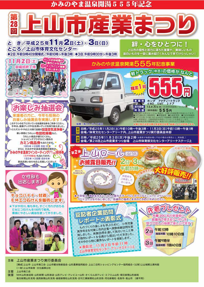 さて、今週末の11月2日(土)・3日(日)、上山市産業まつりが開催されます。