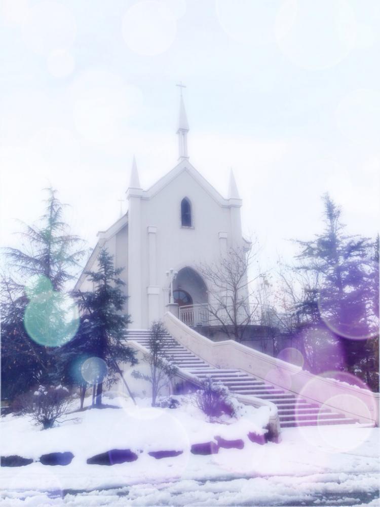 ●白い雪でそまるチャペル|ブライダルサロン アヴェニール