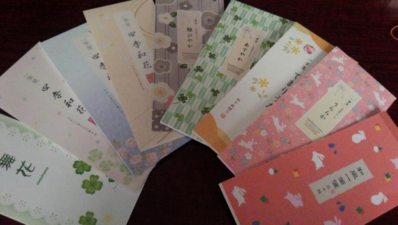 写真は、ついつい集めてしまう「一筆便箋」です。