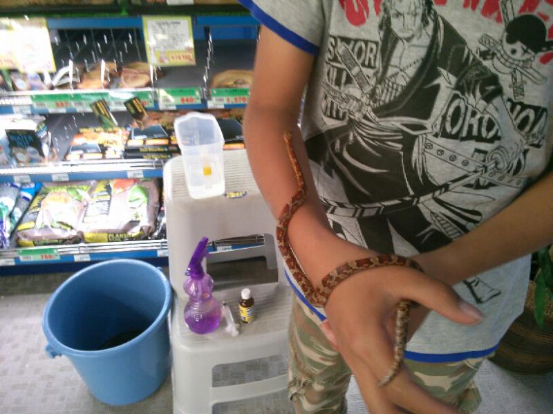 先日行ったペットショップで、たまたま係のお兄さんが、へびのお部屋掃除