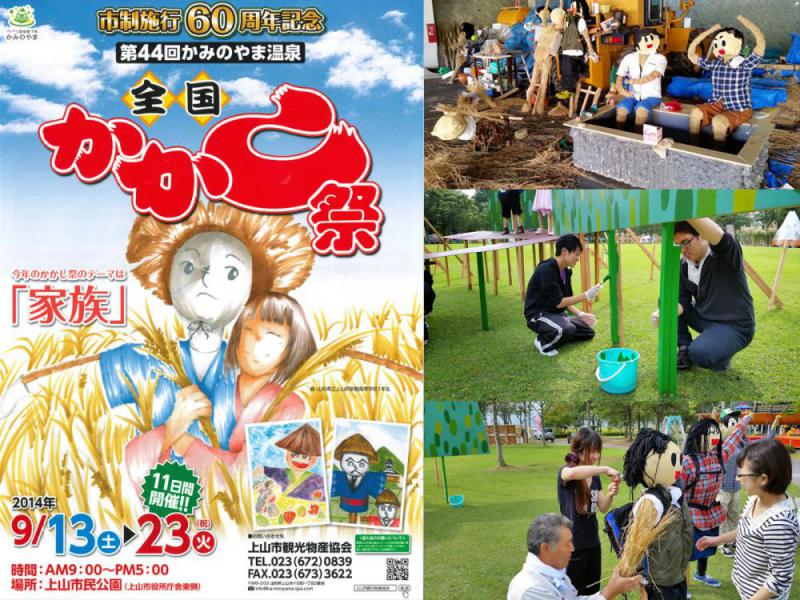 かみのやま温泉が誇る名イベント「かみのやま温泉全国かかし祭」1971年から毎年開かれ、全国各地から様々なかかしが参加します。世相を反映したものや人気のキャラクター、スポーツ選手をかたどったもの、伝統的なものなど「かかし」数百体が会場いっぱいに展示されます。老若男女が楽しめる秋の風物詩は、どこか懐かしく、それでいて斬新なアイデアが詰まっています。今年は9/13〜23日までの11日間で開催されます。今回のテーマは「家族」古窯社員も毎年一丸となってかかしの制作に取り組んでいます。完成した作品は当日は会場に展示されます。会場は上山市民公園(古窯から近いです)開催期間中にご宿泊のお客様はぜひとも足を運んでみてください!完成の様子はまた後日のご報告です!-------------------------------------------------山形県かみのやま温泉 日本の宿古窯 公式ホームページ /旅館古窯公式Facebookページ:http://www.facebook.com/ryokan.koyo