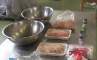 いやーっ、何年ぶりだろか?やまがた地鶏のソーセージに挑戦したのは。今回はフランクフルトを完全手作りで完成させました。 まずは、ミンチにした地鶏肉と豚肉、豚背脂、塩、砂糖、セージやオールスパイスなどの香辛料を、手で混ぜ合わせます。生徒は「ツナみたい。」「ハンバーグでも美味そう。」などキャッキャッと歓声を上げながら約20分間練り込みました。次に、腸詰め器というよりは絞り器で豚のケーシングに詰め込みます。これはとっても力のいる工程です。また、ケーシングを持つ手はブレーキをかけたり、進めたりのテクニックが必要です。詰め終わったら真ん中を手で摘んで捻り、適当な長さで再び捻って、下の部分を編み込むと、ソーセージの完成です。 65℃で30分間熱処理殺菌をして、こんなに美味しそうなソーセージが出来上がりました。 やまがた地鶏ソーセージは、3月7日の過疎集落等自立再生対策事業の成果報告会で試食できます。もちろん、一般入場可です。みなさん、来てくださいね。