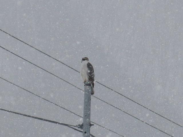 ウチのまわりで りんごを食べている100羽以上の小鳥たちを狙っているのです。
