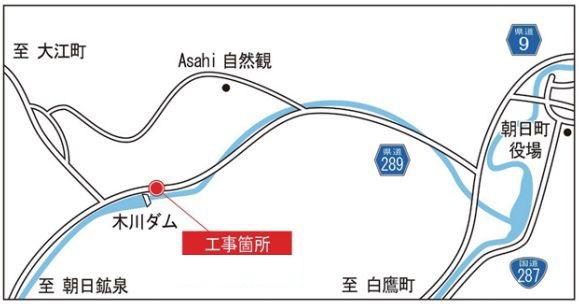 県道289号木川ダム付近にて電線管埋設工事が行われます。