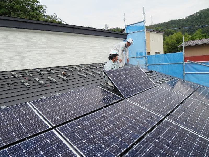 横葺板金屋根のキャッチ金具による太陽光工事です。