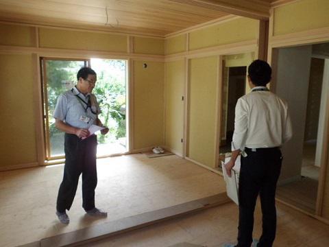 本日、当社の現場管理者たちによる木工事完了検査がおこなわれました。この木工事完了検査は、仕上げ工事が始まる前の最終確認として当社でおこなっているもので、それぞれ検査項目を分担して隅々まで確認をしています。こちらの現場も無事に検査が終了し、これより仕上げ工事に入っていきます。引渡しに向けて、細心の注意を心がけてまいります。