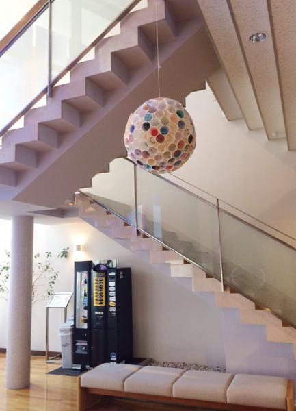 9月の「ひろまりプチマルシェ」で開催した“みんなで紙コップアート”の球体が完成しました!!参加してくださった皆様、ありがとうございました。1個1個は個性的で色とりどりなのに、ひとつになると不思議と一体感があります。紙コップとは思えませんね。しばらく美術館のロビーに展示しますので、ぜひ見に来てください。
