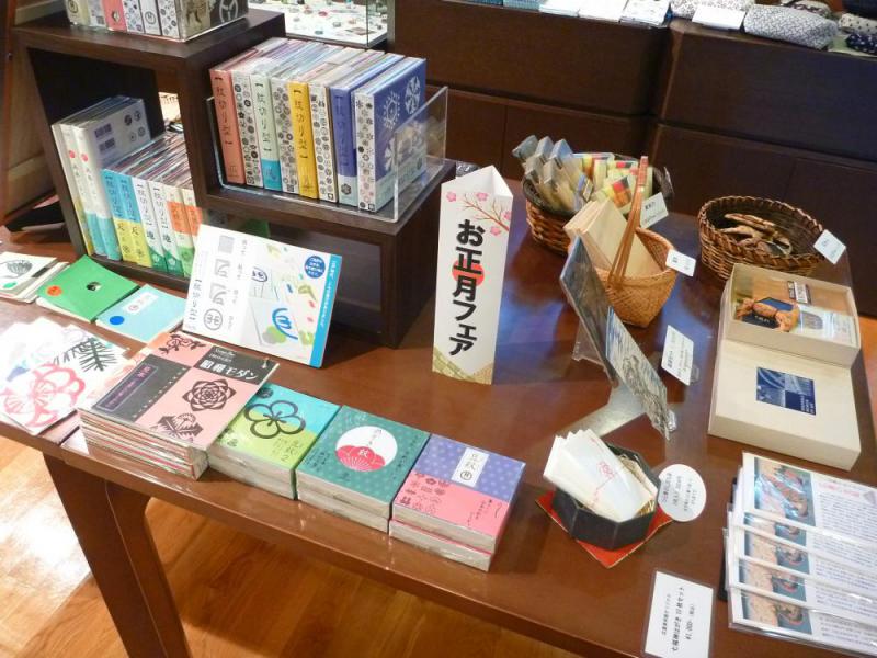 早いもので、今年も残すところ2ヶ月余となりました。年賀状の販売もはじまり、皆様も少しずつ、新年に向けた準備をはじめられた頃ではないでしょうか?ただいまミュージアムショップでは、そんな新年に向けたお正月フェアが開催中です。年賀状におススメの紋切りや版画セットの販売、お正月にピッタリな飾り手拭いなどの商品をご紹介しています。年賀状デザインで迷っている方、お正月飾りをお探しの方などお気軽に足を運んでみてください!