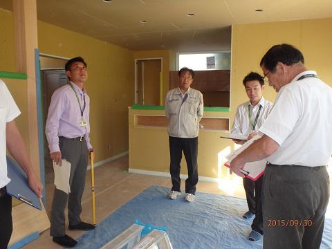 本日、当社の現場管理者たちによる木工事完了検査がおこなわれました。この木工事完了検査は、仕上げ工事が始まる前の最終確認として当社でおこなっているもので、それぞれ検査項目を分担して隅々まで確認をしています。こちらの現場も無事に検査が終了し、これより仕上げ工事に入っていきます。引渡しに向けて、細心の注意を心がけてまいります。
