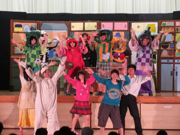 お待たせいたしました。置農演劇部の食育ミュージカル東京公演と産地直売、そして今年度新しく開催される豆料理講習会の開催日程が決まりました。食育ミュージカルと産直は、12月11日(金)杉並区立桃井2小、12日(土)は杉並区立杉並4小と専修大学付属高校になります。一般の入場は、12日(土)午後2時開演の専大付属高校体育館だけになりますので、是非お出でください。入場は無料。内履きをご持参ください。尚、置農や川西町の特産品を安くご提供する産直も同時開催です。また、12日(土)午前11時から午後1時30分の日程で、置農生が講師になる豆料理講習会を、杉並区高円寺南のフリースペースヒトツナさんを会場に開催します。紅大豆ご飯や青豆の打ち豆が入ったかぶ汁、紅大豆大福など手作りの豆料理を5品堪能できますのでお出でください。参加料は中学生以上500円、小学生300円、幼児200円です。エプロンやバンダナ、ハンカチかタオルはご持参ください。以下に食育ミュージカルのあらすじを添付します。みなさんよろしくね。T.上演作品:作品名 『モンスターハウスへようこそ!』作・演出:成澤久美(演劇部顧問) 作曲:知野礼美(東北文教短期大学講師)2.あらすじ元気いっぱい!わがままいっぱいのたぁくん。ある夜、お菓子ばっかり食べていたら、あれあれ?しっぽや耳が生えてきた!いつの間にかモンスターへ大変身。仲良しのポチの言うことも聞かないで、現れたモンスターたちとモンスターフードを食べ散らかしちゃうたぁくん。心配するポチや食べ物ゴーストたちは、何とか元に戻そうとするけれど…たぁくんはどんどんモンスターに近づいてきて大ピンチ!果たして人間に戻ることができるのか?