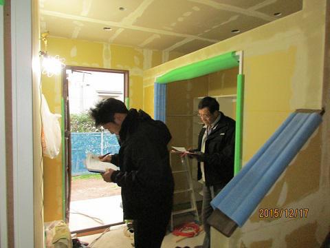 本日、当社の現場管理者たちによる木工事完了検査がおこなわれました。この木工事完了検査は、仕上げ工事が始まる前の最終確認として当社でおこなっているもので、それぞれ検査項目を分担して隅々まで確認をしています。こちらの現場も無事に検査が終了し、これより仕上げ工事に入っていきます。引渡しに向けて、細心の注意を心がけてまいります。