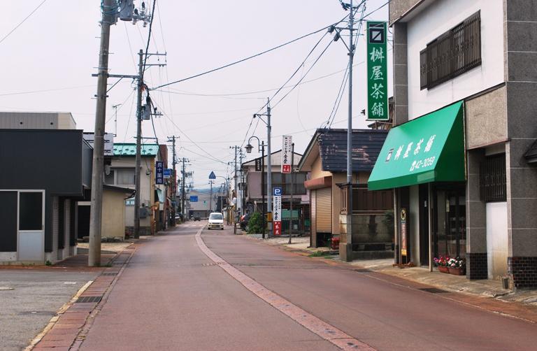 十印さんのある五日町から「両羽銀行」(現山形銀行)に入ると、通りは十日町になる、それぞれ市がたつ日が違っていた。当時どんな風景だったのでしょう? 今はやりのまるしぇや朝市この通りで、同じように5日、10日とやるのも面白そうだけど。はじめの写真は突き当りがカギ十字となる山形銀行交差点で次の曲がり角になるところから撮影。突き当りは長崎屋さんで向こうから手前にバードは進みます。 中間くらいのところに小松小学校の正門に通じる道があり、角にパン屋さんがあります。中学時代のクラブ帰り道、須藤というやつと、くずパン(コーヒーロールのはじ、ないときは食パンのみみ)かって食べました。コーヒーロールはクリームが残っていておいしいのです。当時おばあちゃんが店番してました、紙の袋か、新聞紙?にごそごそといっぱいつめて10円か20円だったと思います、今思うと、結構サービスしてくれたんでしょうね、コーヒーロールパン、今もパリドールサノ(山銀のある交差点にある)やヤマザワで販売してました。ダリアパンもむかしからあったが、おいしいです。 写真手前のお茶屋さん、主人は父と同級生で娘さんが自分と同級生、主人は油絵が趣味で画風がすきでしたが、数年前に亡くなりました。川西で油彩を描くひとはほとんどいなくなったようで、寂しいです。お茶屋さんを過ぎて右側にまがりますと、寛政二年二月(西暦1790年)創業、お菓子一筋という錦屋さんがあります。 『・店の損得より、お客様を第一に行動する・お店はお客様のために、工場はお店のためにある』とHPにあります。門前(等順寺)の菓子屋として創業し今に続いている理由がここにあります。赤いポスト、萱屋根もいい感じに手入れされてます。ここにもこだわりを感じます。バードも食べたかも?比較の古写真がまだ探せてないのですが、錦屋さんと寺は今も昔も同じだったでしょう。