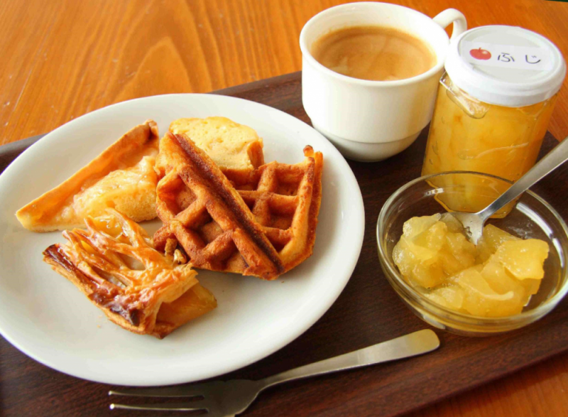 今回のスペシャルスイーツセットは桃のタルト(1/4)ラフランスケーキ(1/4)アップルパイ(1/4)ワッフル(1/2)さらにコンポート(150g)1瓶がついてパスポート お持ちの方通常940円が540円。スイーツパスポート買った方是非来てくださいね。お待ちしております!