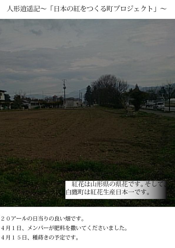 国道348号線沿いで、白鷹町畔藤くぬぎ林という地に因んで、「くぬぎ林紅花を愛する会」(会長 金田茂也)として、紅花の生産をすることになりました。