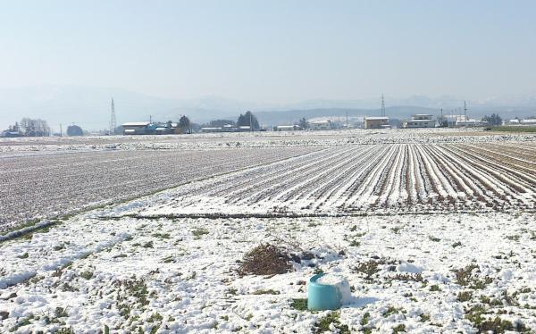 昨夜から降りしきった春の淡雪が、写真左の様に田畑をうっすり冬色に染めました。積雪がほとんどなくなり、梅や桜、こぶしやすいせんまでが一気に咲き誇ろうとしているこの時期に、突然の積雪は驚きでした。このような光景で、ひときわ目立ったのは、羽前小松駅横の桜の木(写真右)。大きく膨らんだ桜の蕾に、うっすらと淡雪がつもって、まるで雪桜の様に見えるワンショットです。「生まれて始めてみました。」というタクシーの運転手の方など、びっくりされている大人がたくさんいました。珍しく、美しい雪桜の光景です。
