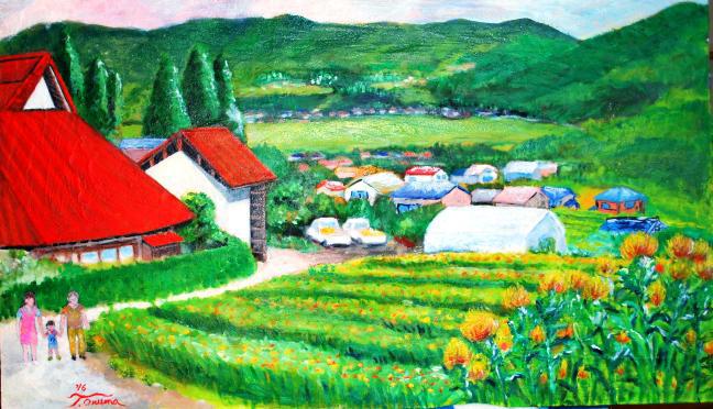 ようやく残りの絵完成、いつもぎりぎり、というか時間切れでここらへんでやめるかとなる、今は田舎に来たので2日前には完成させないといけなくなった、今日は大内宿を経由してのんびり東京に向かう。ひさびさに孫に逢えるからこころうきうきだ・ 置賜の白鷹町十王地区紅花の里と高畠町の安久津八幡の倭舞