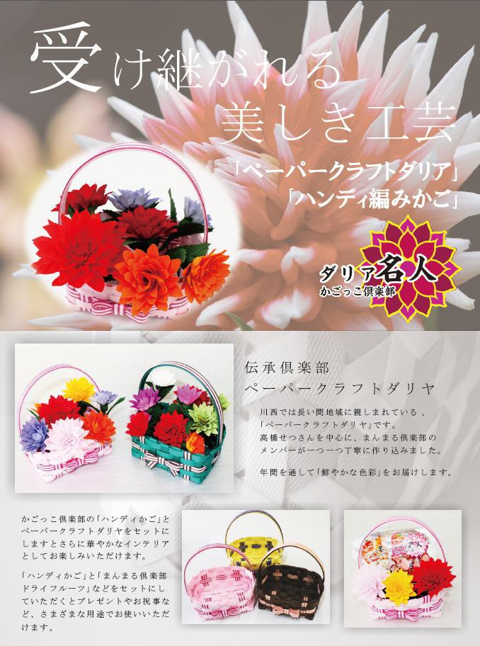 【まんまる倶楽部】快調に活動中昨年度の過疎事業で開催しました「つる細工講座」の有志が集い、「まんまる倶楽部」の活動を展開中です。つる細工やペーパークラフトバック、また町の花「ダリア」のペーパークラフトなど、楽しい製作活動を続けています。...5月14日にオープンする「森のマルシェ」にも出品を予定しております。今後の活動はHPやSNSでアップしてまいりますのでご期待ください。(ご支援いただいております鈴木さんよりPOPを作成していただきました・・ありがとうございました。)