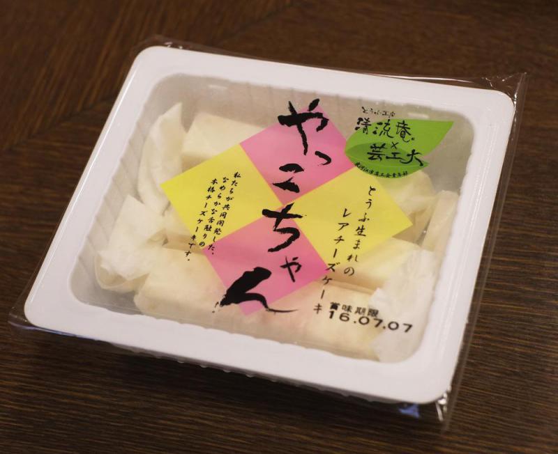 寒河江商工会議所青年部さんと東北芸術工科大学さんとのコラボレーションで生まれた「とうふ生まれのレアチーズケーキ「やっこちゃん」が人気です!5年程前に、コンセプトからパッケージ中身に至るまで共同で開発させて頂きました。地豆豆腐を4割とクリームチーズを使ってまろやか〜なレアチーズケーキに仕上げました。下の部分はクランチ系のサクサク生地でメリハリのついたアクセントになっています。冷凍で保存しておりますので、半解凍してお召し上がり頂くと”レアチーズアイス”のような食感になりますよ!さくらんぼウォークや、ツールドさくらんぼの休憩所でもふるまわせて頂き、某芸能人の方にも喜んで食べてもらいました(^-^)/ぜひご賞味下さい。→ オンラインショップでのご購入はこちら