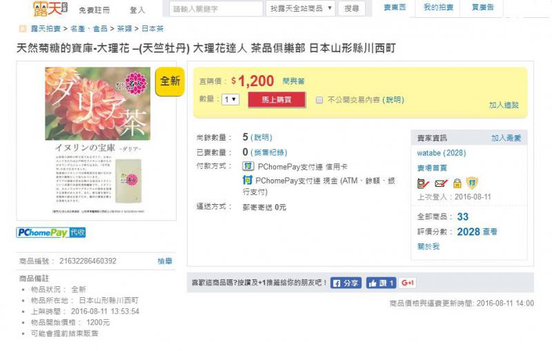 【小さなインバウンド活動】昨日、台湾の知り合いの協力を得て台湾最大手オークションサイト「露天」へまんまる倶楽部プロデュースの8商品をアップいたしました。(ご協力:なでらの森・オフィスプラスワン)...なかなか民間レベルでは、外販やインバウンドなどの対応が難しいものですが、少しの工夫で草の根活動ができることを知りました。山形県でも勧めている海外誘客やダリヤのこの季節の誘客の一助になれば幸いです。キーワードは:日本→山形県→川西町台湾オークションサイト「露天」へGO