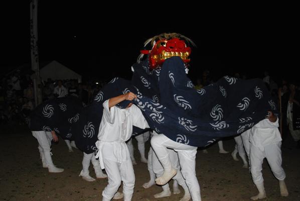 茅葺屋根の御堂に獅子舞、いい風景ですね。ここの獅子どこよりも鼻の穴が大きい、思い出したのが吉田拓郎の歌 『馬が笑ってる』・・・♪獅子が笑ってる、♪獅子が笑ってる、♪でっかい鼻の穴おっぴろげーてー獅子が笑ってるー♪ほいほい!!でした。