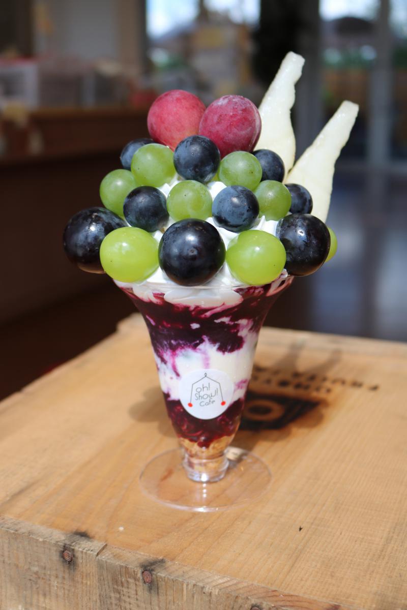 王将果樹園直営の「Oh!Show!Cafe」では、秋のフルーツパフェがデビューしました。