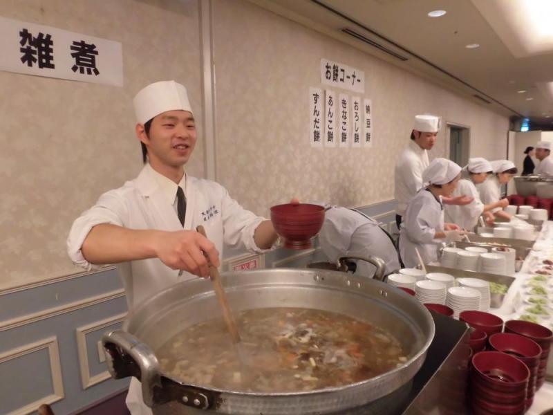 全国各地で具材や味付けが異なる「お雑煮」ですが、当館では、昨日と本日の朝食で皆様に「山形のお雑煮」を味わって頂きました。山形のお雑煮の特徴は、とにかくたくさんの具材が入ること!今回使った食材は、大根、人参、ごぼう、凍み豆腐、もだし、ぜんまい、こんにゃく、せり、鶏肉の9種類!とても食べ応えのあるお雑煮です。また山形では、お雑煮にはつきたての柔らかいお餅を入れます。焼き餅と違いとても柔らかく、つるんとしたのど越しが美味しいですよ♪山形ならではお雑煮、ぜひお楽しみください^^ 美味求真の宿 天童ホテル 公式HP