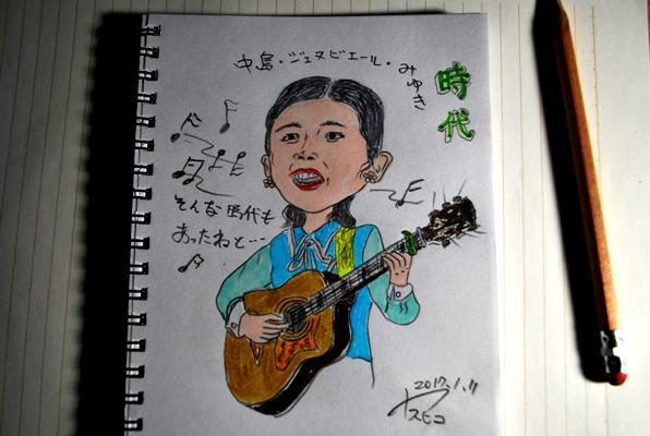 2017年1月7日米沢にある『東條ふれあいプラザ』で”時代”を歌うお二人さん、描いて見た・・・中島・みゆきさんの歌はいいですな、1975年”時代”でグランプリ、みゆきさん23歳・・あれから42年。。みゆきさん今年65歳なんだなー、いやーすごいわねー、各年代でヒットしてるのだから、よく世代変わるとうけないのが普通だけど、どういう感性の持ち主なのでしょう・・たくろうさんも70過ぎて頑張っている、ファイトはたくろうの歌と思っていたがみゆきさんの歌なんだね、たくろう調ですがねどっちが歌ってもすきですねーこんど聞かせてもらいたい。