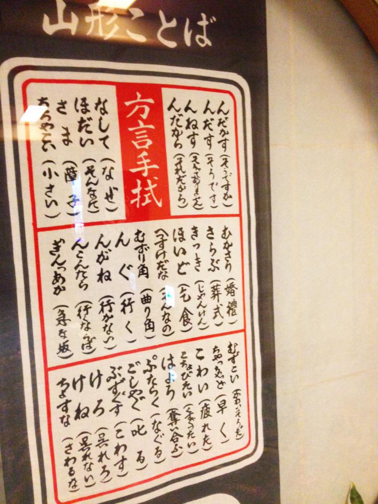 山形の代表的な方言が書かれた掛け軸が地下1階居酒屋「ほろ酔い亭」前に飾られています!方言を文字にしてみるとなんだか面白くなりますね!県内の方でも“へぇ〜”と思う言葉が見つかるかも・・・大浴場・居酒屋ご利用の際はぜひご覧になってみて下さいね♪ 【居酒屋ほろ酔い亭】場所:当館地下1階営業時間:19:00〜23:30(LO.23:00) ※不定休山形の地酒や昔ながらのラーメンが人気!夕食後の1杯、締めのラーメンなどぜひご利用くださいませ♪ 美味求真の宿 天童ホテル 公式HPhttp://www.tendohotel.co.jp/