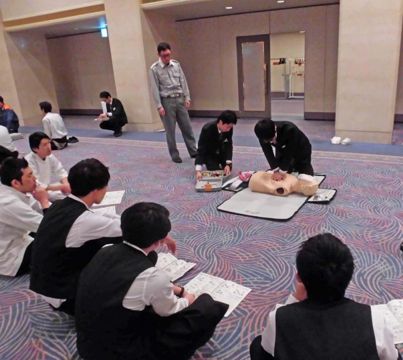 今日はAEDを使った救急手当講習会を行いました。当館をご利用頂くお客様の安全のため定期的にこのような講習会の場を設けております。万が一の事態に備え、適切な対応ができるよう救急救命士の方の説明に耳を傾ける社員達。実際に人形とAEDを使った講習では救命救急士の方から丁寧にご指導いただきました。スタッフ皆がこれからの業務にも活かしていきたいと思います!! 美味求真の宿 天童ホテル 公式HPhttp://www.tendohotel.co.jp/