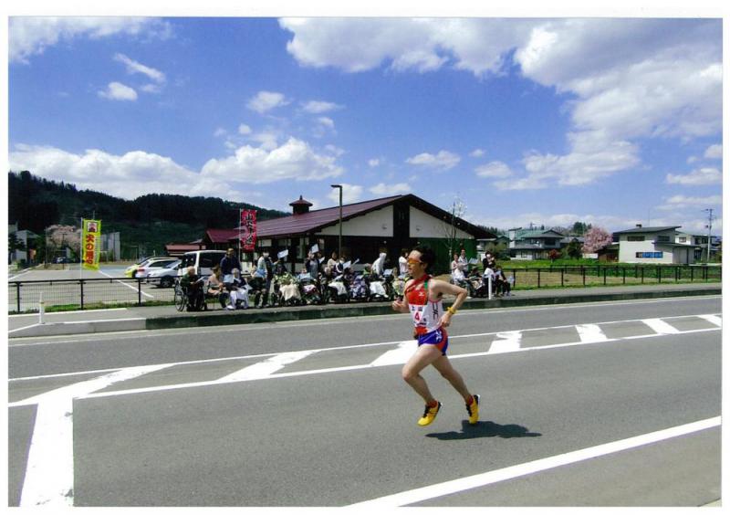 昨年は雨のため見れなかった駅伝ですが、今年は天気も良好!さっそく、近くの道の駅朝日町(リンゴの森)の道路向かいで応援です。 「フレーフレーー」 「頑張れーー!」旗を振って大きな声で応援しましたよ。