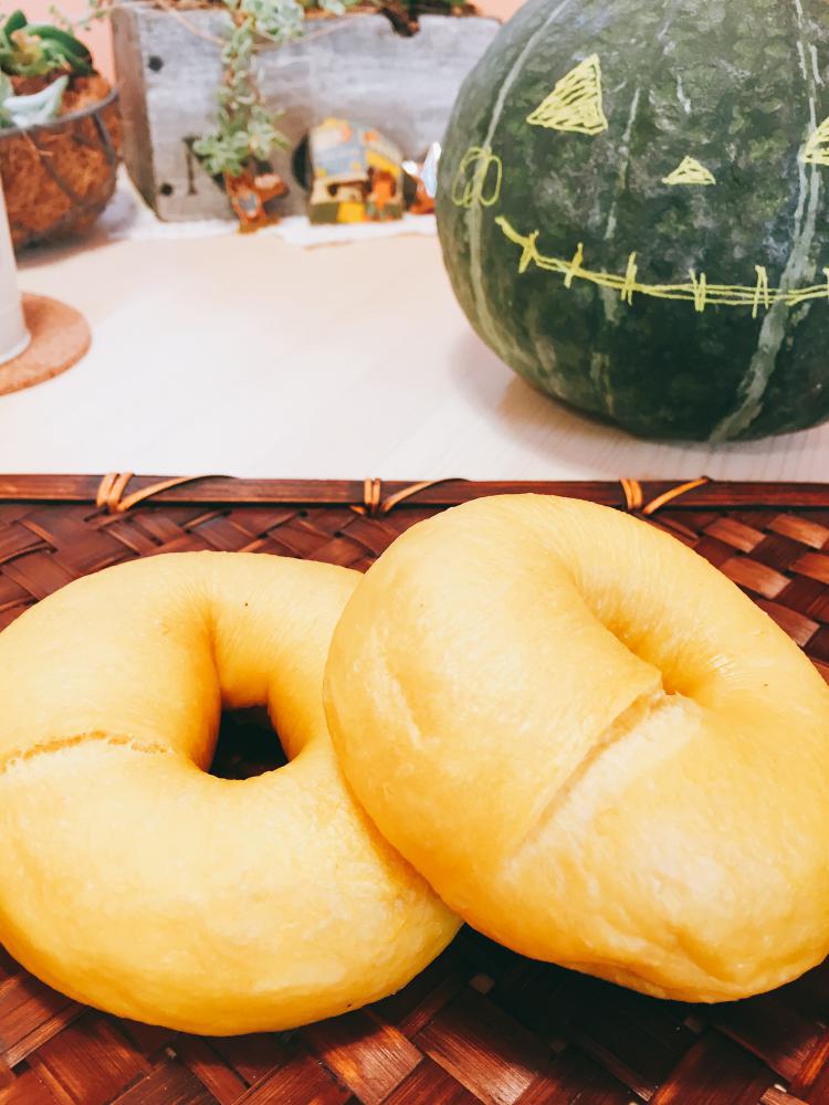 去年の秋に大好評だった、かぼちゃベーグル!今年も始まりました♪知り合い農家さんの美味しいかぼちゃ!寒河江産です◎かぼちゃベーグル(230円)