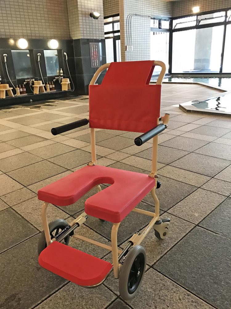 当館の大浴場・脱衣所でお使いいただける「車いす」を新しく設置いたしました♪濡れても大丈夫な車いすなので、お風呂場でのご移動の際にお使いくださいませ。現在、脱衣所から大浴場まで段差がございますが、今後スロープを設け段差なく温泉を楽しんいただけるように改善していく予定でございます。車いすは数に限りがございますが、ご希望のお客様はお気軽にスタッフへお声がけ下さいませ♪美味求真の宿 天童ホテルhttp://www.tendohotel.co.jp