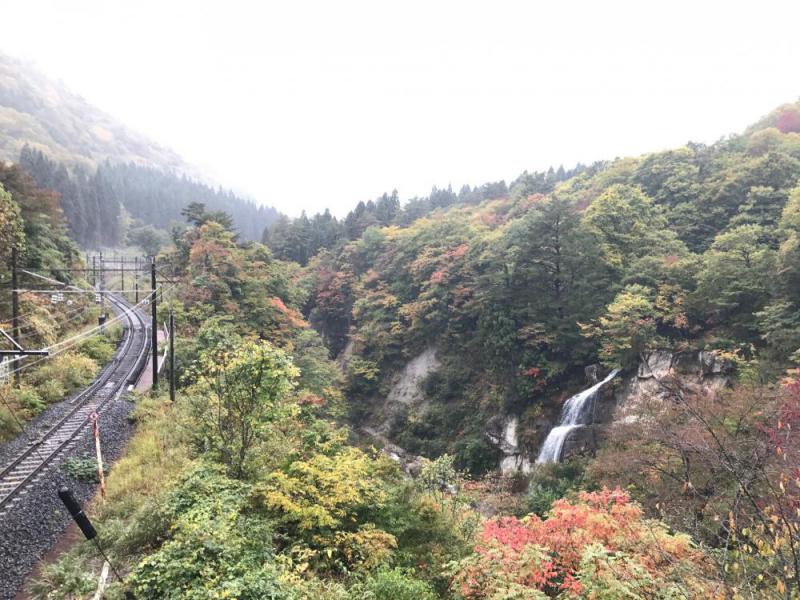 山形の紅葉情報をお知らせします♪山寺・天童エリアでは、天童市の面白山が【見頃】を迎えています。写真は、JR仙山線の面白山高原駅で撮影したものです。紅葉川(もみじがわ)に流れ落ちる滝が見えるんですよ♪滝と線路と紅葉、いいですね〜。紅葉川は、名前の通り紅葉の美しい渓谷です。面白山の手前にある山寺をはじめ、街に近い天童の若松寺や総合運動公園は【色づき始め】でまだまだこれからです。今年はどんな風に色づくか楽しみですね! 美味求真の宿 天童ホテルhttp://www.tendohotel.co.jp