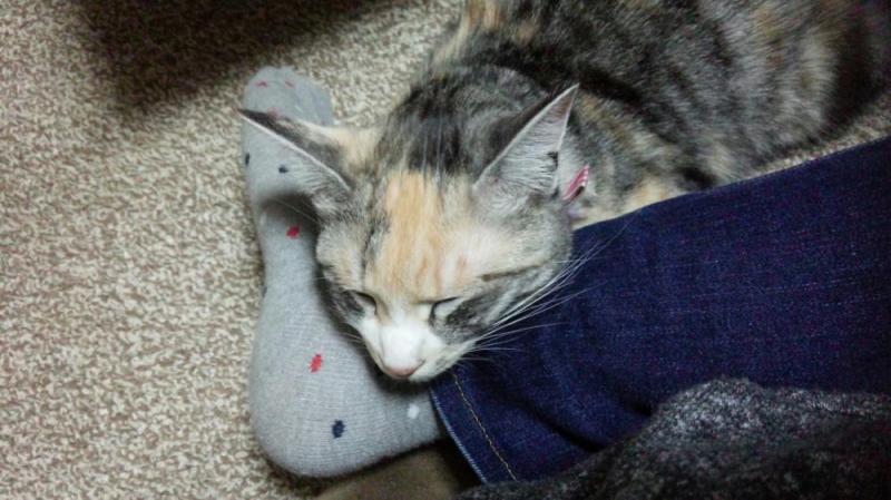 気持ち良さそうに寝てるから、足が動かせない(><)もうちょいガマンしてあげよう(笑)