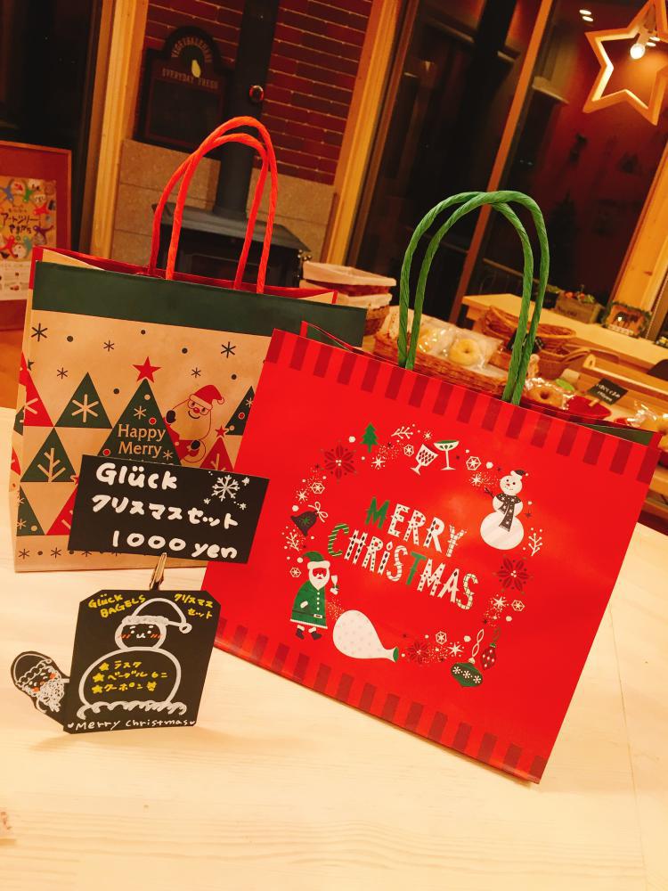 22日から24日まで、お得なクリスマスセット販売いたします♪おすすめベーグル6個とラスク、お得なクーポン券入りで税込1000円のセットです(^ω^)限定販売です◎かわいい紙袋に入っていますので、プレゼントにおすすめです!