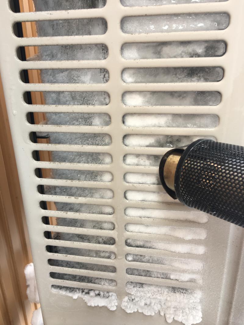 ・室外機が凍結し霜がびっしりの場合・・・