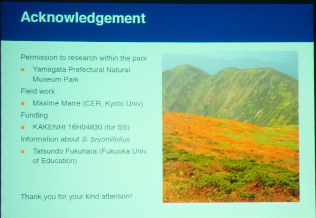 終始月山山麓の調査でした。基点になった県立自然博物園と調査終了後錦秋の姥ヶ岳に登った思い出を込めて、嬉しい口頭発表になりました。
