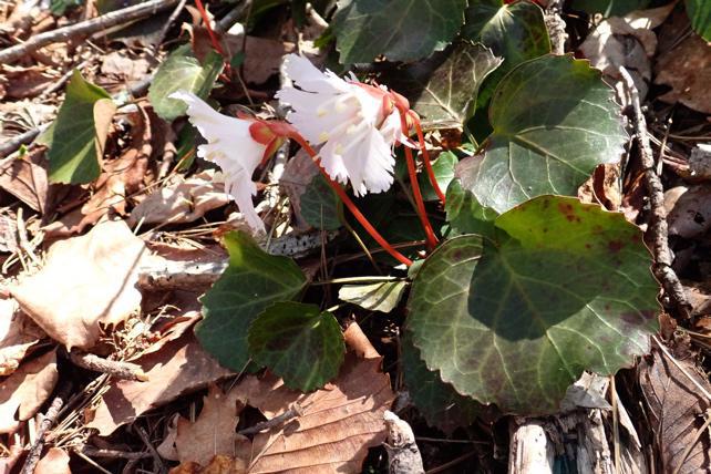 8合目あたりから9合目の急な岩場です。松食い虫による松枯れが痛々しい。でもイワウチワは群生をなして見事でした。