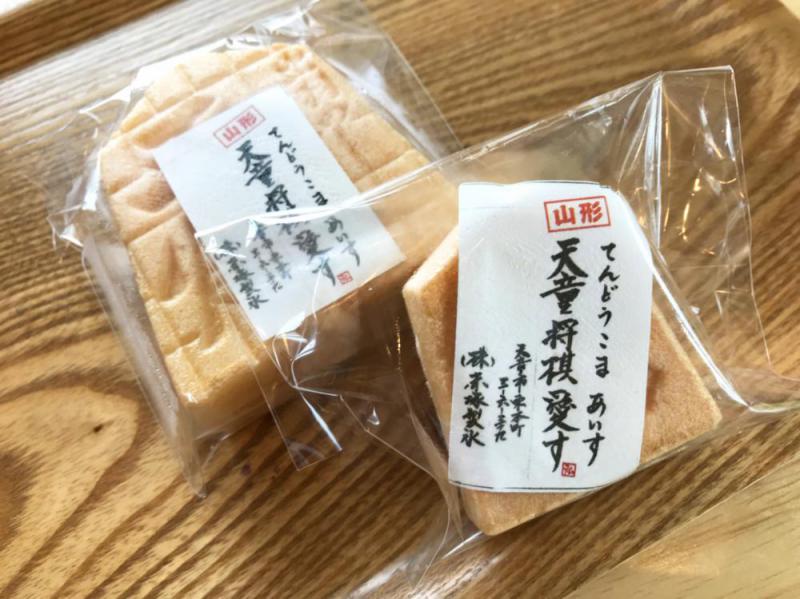 【当館より約500mのアイス専門店「弘水」で食べる、将棋愛つまった逸品】天童の老舗製氷店赤塚製氷が営むアイス専門店「弘水(こうすい)」は県内産のくだものを使った自家製シロップをたっぷりかけたかき氷がおいしいお店です。その弘水で、新しく天童ならではのアイスを味わえます!商品名は『天童将棋愛す(てんどうこまアイス)』王将と左馬が描かれたサクサク最中に、塩大福味のアイスがたっぷり詰まっています♪程良い塩気が甘さを引き立てていて、あずきのつぶつぶが食感を際立たせていてオイシイ!!大きさは2種類で、【大/王将 200円】【小/左馬 150円】です。6月19日から行われた将棋名人戦第6局では、1日目の昼食にデザートとして提供されました。夏の天童を楽しむアイテムのひとつにおすすめです♪Ice cafe' 弘水 -KOSUI-【時間】10:30〜16:30【定休日】火曜日【場所】天童市東本町3-6-39【URL】http://www.akatuka-ice.com/ 美味求真の宿 天童ホテル 公式HPhttp://www.tendohotel.co.jp