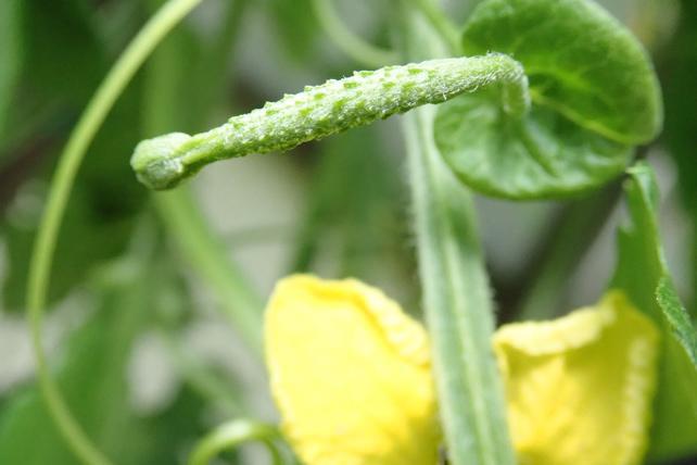 雌花の花柄がこんな形でふくらみ、花をつけ交配し実になる。この辺りの観察は注意すれば観察出来る。つまり他家受粉という。