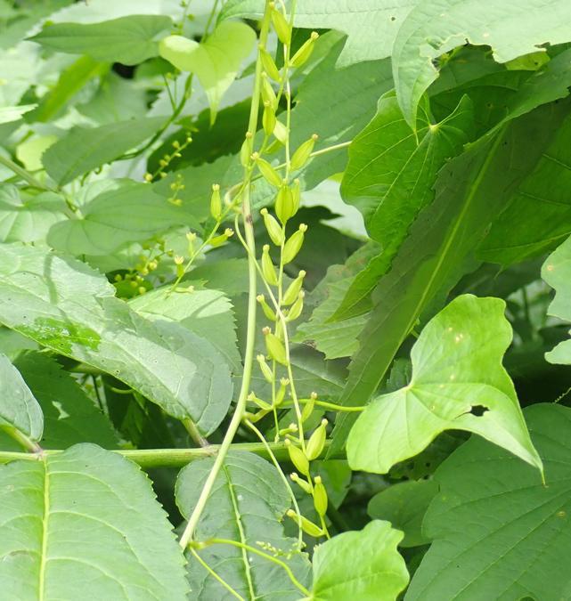 トレール沿いつる性の植物でヤマイモ繁茂。