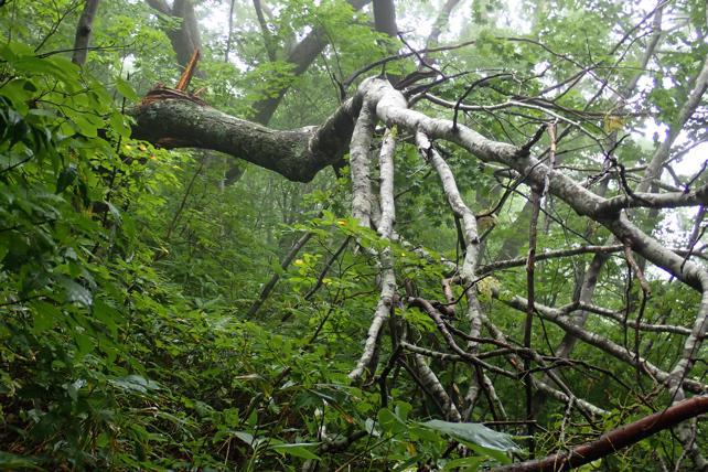 ホツツジの岡西斜面にあったこしあぶらのきが倒れていました。強風のせい?
