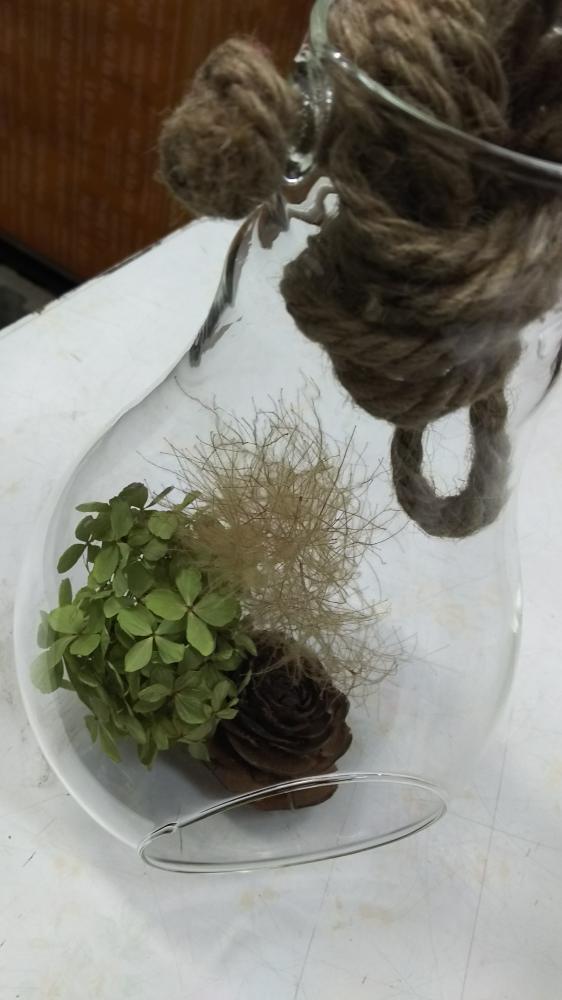 ハンギングガラスの中に☆アジサイとシダローズとスモークツリー♪♪♪