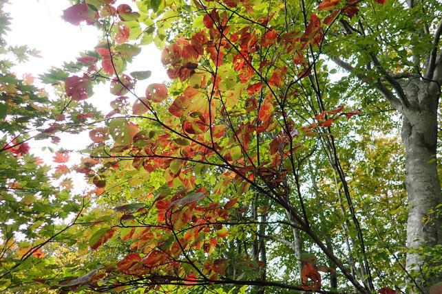 ブナ林で紅葉を告げてくれるのがムシカリです.スイカズラ科でタニウツギ、ヤブデマリ、などもこの種類です。きれいに虫が食べてくれます。葉の形から亀の甲羅に似ているところからオオカメノキとも言います。