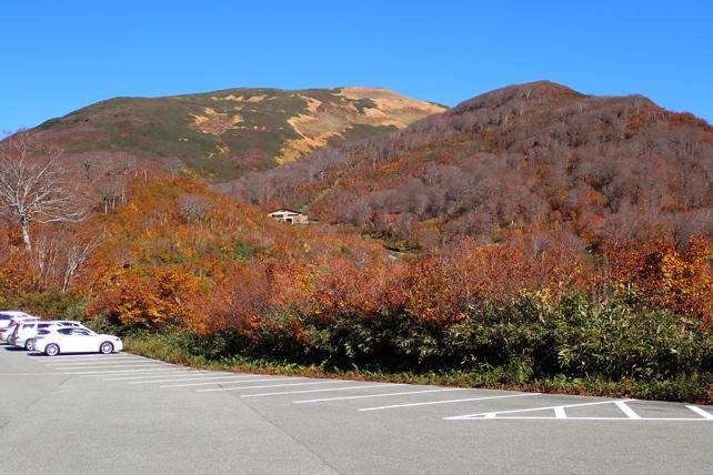 スケッしクラブ10月最終のイベント。清水コースは月山新道出来るまえはここから姥ヶ岳〜月山へのルートでした。4〜5月春スキーは清水コースを滑りを下りました。 雲ひとつない秋晴れのもとさあ出発です。