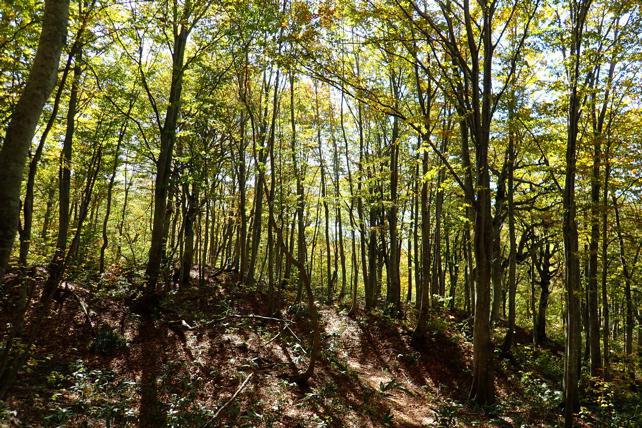 広々と、遠くまで透き通るブナ林。ここほどの絶景はあまり見られない。