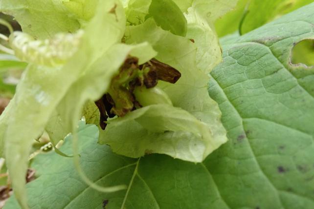 温室の様子が変わってきます。両性花も少なく、温室自体枯れ始め変形して行きます。