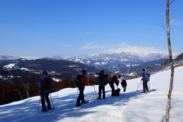 東斜面の絶壁、断崖に対し西南側は想像に絶する平坦さである。朝日の連山、出羽丘陵が視界内です。快晴と言う事もありますが。異口同音感動でした。