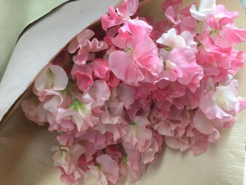 スイトピーの花束。サーモンって名前のスイトピーです☆