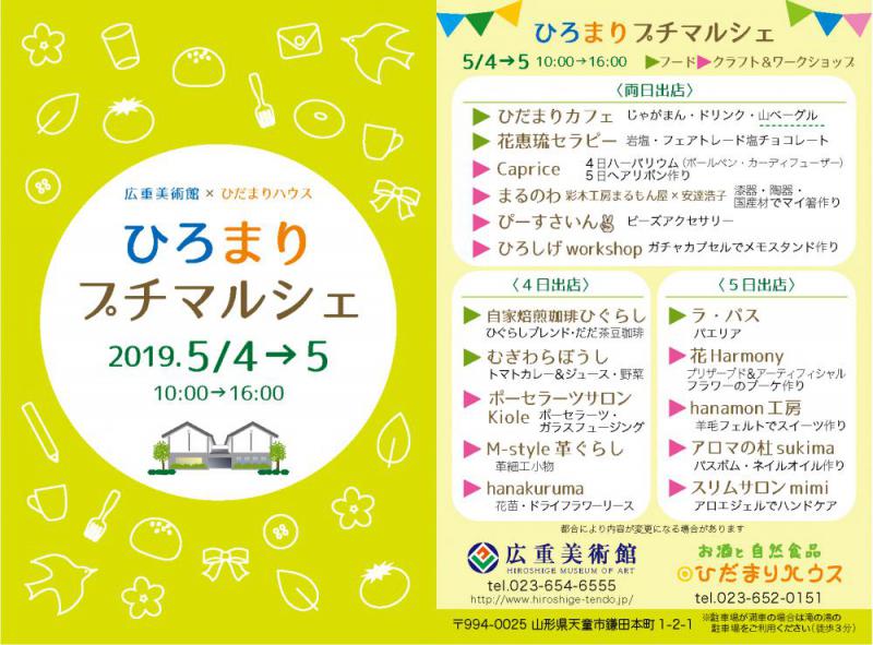 5月4日(土)5日(日)10:00〜16:00入場無料フードとクラフトをテーマに開催します。GW後半は、ぜひ“ひろまりプチマルシェ”に遊びに来てくださいね!【GWの10連休は休まず開館します】